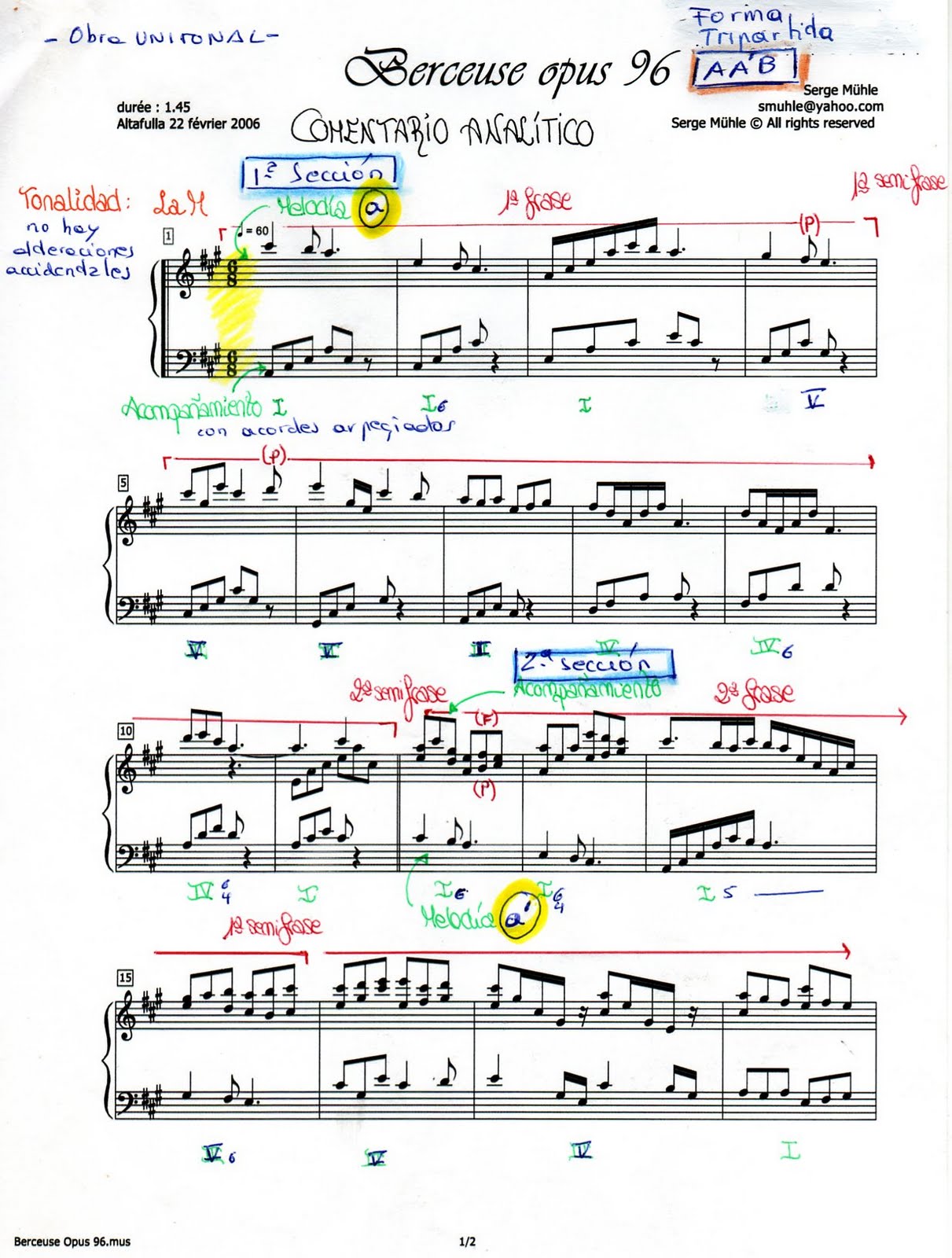 ANÁLISIS. BERCEUSE. Opus 96
